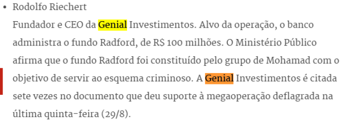 • Engrenagem de esquema maior: a Genial aparece ligada à Operação Carbono Oculto, que investiga lavagem de dinheiro para o crime organizado.