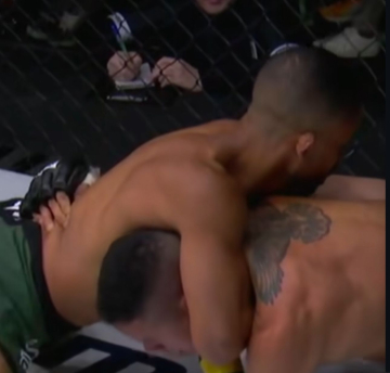 A brecha surgiu em uma tentativa de queda mal executada por Getter. Foi o bastante para que Lucas encaixasse sua especialidade: uma guilhotina em pé, caindo com o adversário e forçando a finalização aos 1min09s do primeiro round.